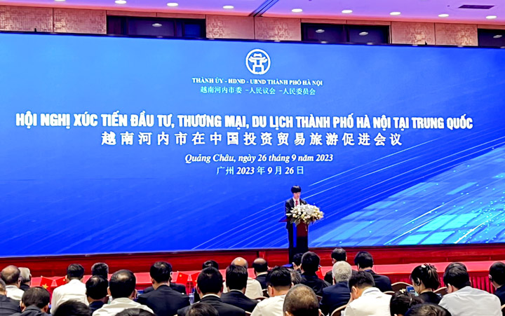 越共中央政治局委员、河内市委书记、河内国会代表团团长丁进勇,越南驻广州总领事武越英、中央外事委员会东北亚—中国司司长黄文俊;广州市副市长赖志洪、市外办主任詹德村,市贸促会主任、广州国际商会会长杨勇出席会议。