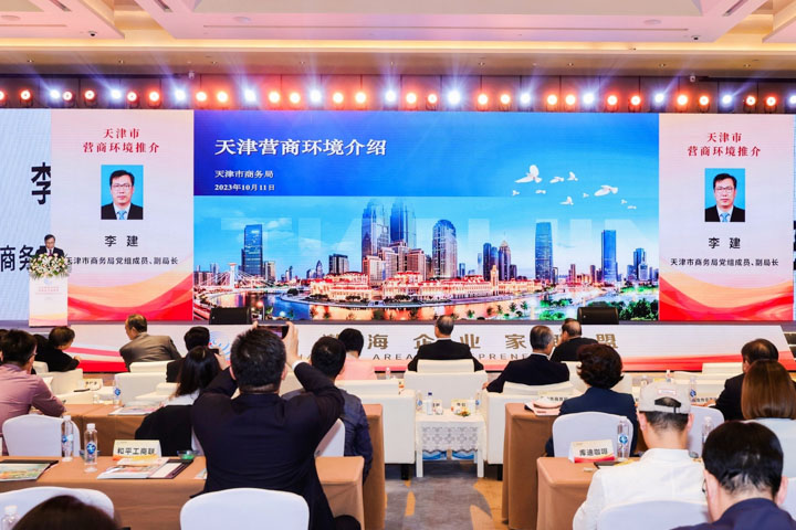 本次大会特别设置“京津冀三地政府推介会”和“环渤海企业家联盟企业家座谈会”。北京市商务局、天津市商务局、河北省商务厅、天津市滨海新区等单位负责人进行了专题推介,来自环渤海区域50余位企业家代表参与座谈会。