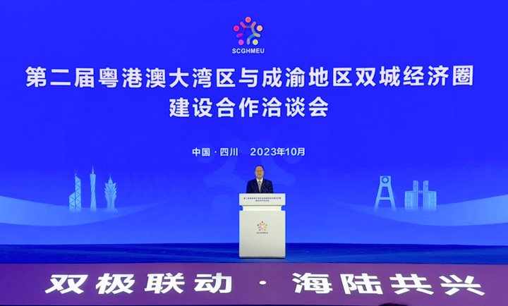 2023年10月27日上午,第二届粤港澳大湾区与成渝地区双城经济圈建设合作洽谈会在成都举行。全国政协常委、香港中华总商会会长、川渝—粤港澳企业家合作联盟共同创会主席、澳门六合彩开奖记录主席蔡冠深博士应邀出席,并作为粤港澳大湾区企业家代表致辞。