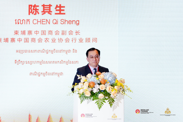 推介环节上,柬埔寨中国商会副会长、柬埔寨中国商会农业协会行业顾问陈其生介绍柬埔寨投资环境,推介柬埔寨发展机遇。