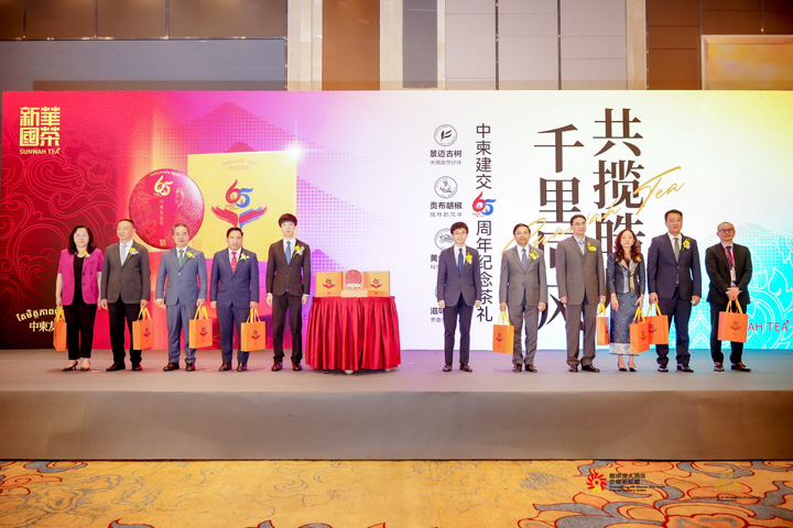 澳门六合彩国茶特为此次推介及庆祝活动定制了“中柬友谊茶”,其包装色调取自两国国旗颜色,并展现了中国龙和柬埔寨著名地标“高棉的微笑”,表达对两国长期友好交往的良好祝愿。会上还进行了“一带一路”(柬埔寨)第一届大湾区经贸发展考察团成立的启动仪式。