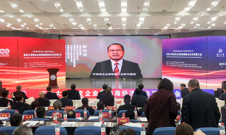 2023年11月11日,“东北大学校友企业家渤海经济合作发展大会”在东北大学秦皇岛分校举办。全国政协常委、香港中华总商会会长、粤港澳大湾区企业家联盟、环渤海企业家联盟主席、东北大学校董会副主席蔡冠深博士进行了视频致辞。