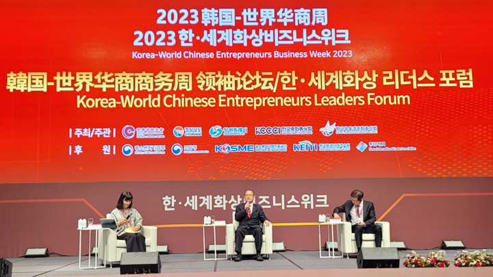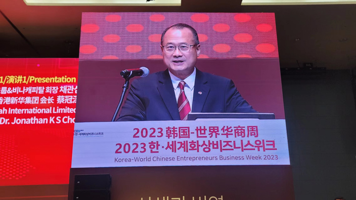 11月23日的领袖论坛环节,蔡博士发表了“发挥香港优势,引领华商新力量”主题演讲。他强调,有海水的地方就有华人,华商企业在推动环球经济、包括东亚地区发展方面,一直扮演重要的参与者、促进者和贡献者角色。而这次有来自11个国家和地区的中华总商会派团到访,充分反映出韩国作为全球主要经济体之一,在创新工业、前沿科技以至娱乐产业等范畴拥有举足轻重的地位。