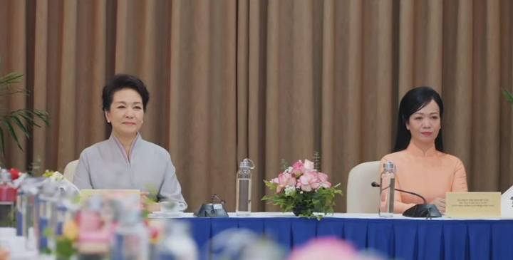 应越共中央总书记阮富仲和夫人、越南社会主义共和国主席武文赏和夫人的邀请,中共中央总书记、中华人民共和国主席习近平和夫人彭丽媛于2023年12月12日—13日对越南进行国事访问。13 日,中国国家主席习近平夫人彭丽媛在越南国家主席武文赏夫人潘氏清心陪同下参观河内国家大学,在校内的蔡冠深文化中心与河内国家大学学生进行交流。