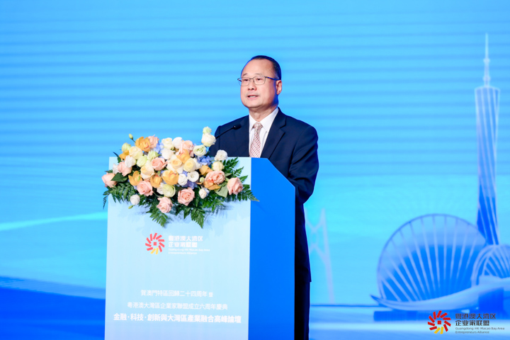 正在北京述职的澳门特区行政长官贺一诚专门为粤港澳大湾区企业家联盟今天的活动发表视频致辞。他表示:“澳门作为粤港澳大湾区科技创新走廊的重要节点城市,正致力于加强与大湾区城市的产学研合作,助力大湾区打造全球科技创新高地。”他指出,“六年来粤港澳大湾区企业家联盟广泛团结各地工商界精英、积极发挥政商沟通对接、企业交流沟通平台的作用,在参与粤港澳大湾区建设上建树良多。相信今天的高峰论坛将进一步助力业界搭建分享经验、探索前沿的交流合作平台,为大湾区科技产业联合注入新的动力。澳门欢迎粤港澳大湾区的企业家到澳门特区和横琴粤澳深度合作区创新、创业和投资发展。”