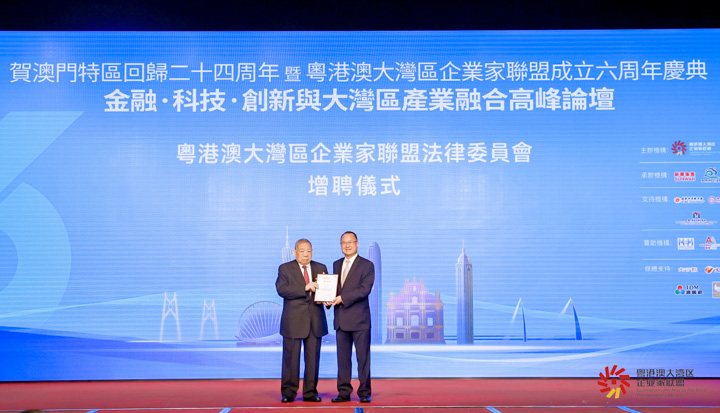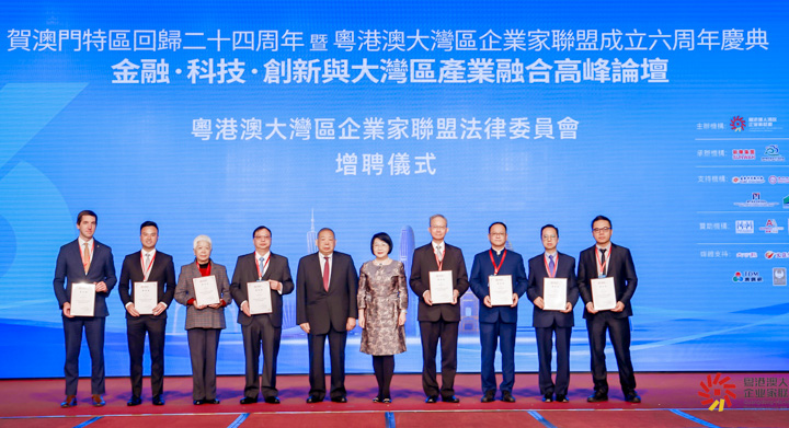 为加快三地不同法律体系融通,在“一国两制”前提下为大湾区的各国建设者提供更多元法律保障,论坛期间联盟还举行了法律委员会增聘仪式。全国政协常委、全国人大常委会澳门基本法委员会副主任崔世昌出任顾问团主任,澳门律师公会理事会主席、全国人大澳门基本法委员会委员黄显辉等四人出任委员会顾问,澳门律师公会秘书长潘爱仪等五人出任委员会副主席。
