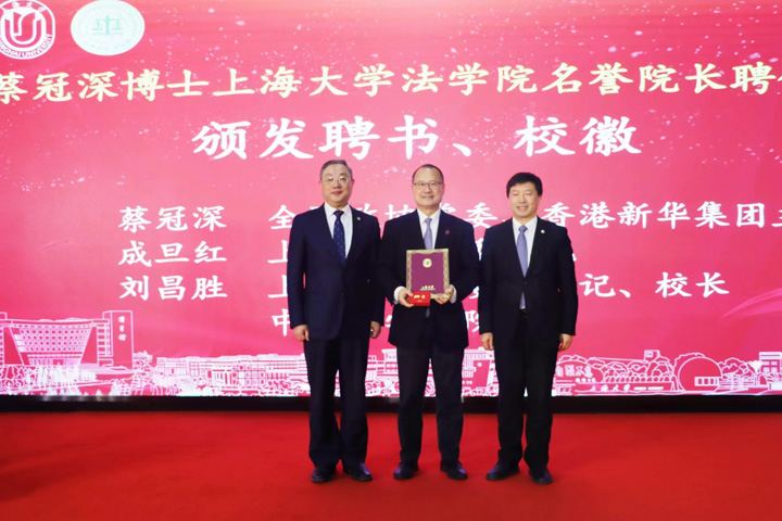1月19日下午,蔡冠深博士获聘上海大学法学院名誉院长仪式在上海大学宝山校区钱伟长图书馆大厅隆重举行。