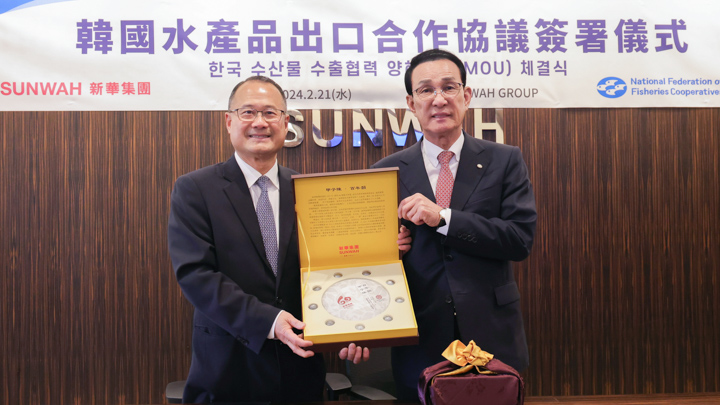 会谈后,双方负责人签署合作协议。双方强调此次协议的签署,是香港海产龙头企业与韩国国家水产机构合作的开端,双方将共同努力,持续扩大韩国水产品在香港以及澳门、广东市场的占有率,并为两国经济作出新的贡献。