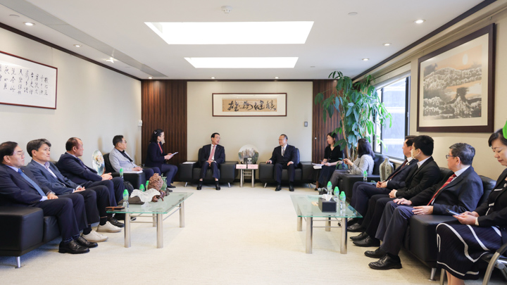 展销会结束后,集团主席蔡冠深博士在总部与代表团一行进行座谈。双方就韩国优质水产品如何更好地进入香港以至粤港澳大湾区市场进行了深入探讨,并交流了目前韩国水产品的出口、品质管控和航运方面的现况和存在问题。