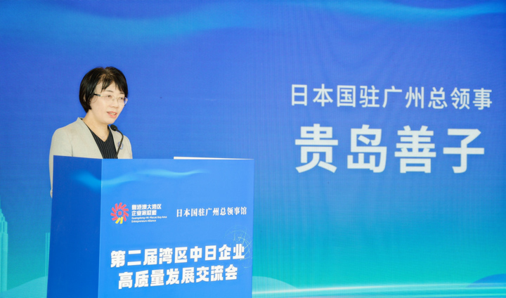 日本国驻广州总领事贵岛善子在致辞中表示,对日本企业来说,大湾区是一个十分重要、有实力、且富有潜力的区域。她形容“大湾区一咳嗽,中国就会感冒。中国一感冒,世界经济就会得肺炎,更不用说亚洲经济。”因此保持大湾区的经济活力,对包括日本在内的亚洲经济市场的健康至关重要。她衷心希望,本次交流将给日资企业和大湾区带来丰硕的成果,令中日双方互利共赢的合作关系不断迈上新台阶。