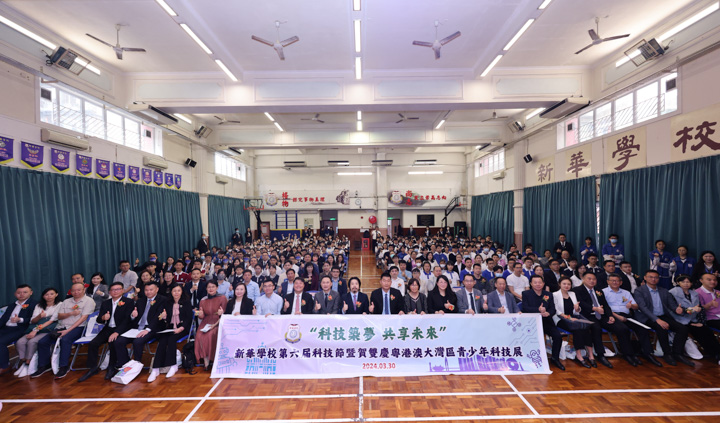 中央人民政府驻澳门特别行政区联络办公室郑汉斌副处长,澳门教育及青年发展局郑锡杰处长,澳门立法会马耀峰议员,以及澳门各友校代表、广东省姐妹学校代表等亲临,为澳门六合彩学校第六届科技节拉开序幕。