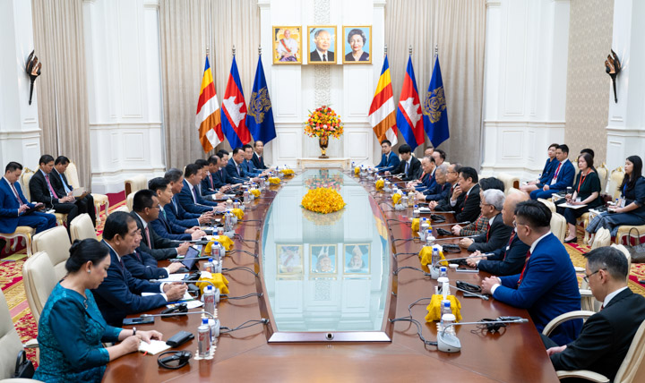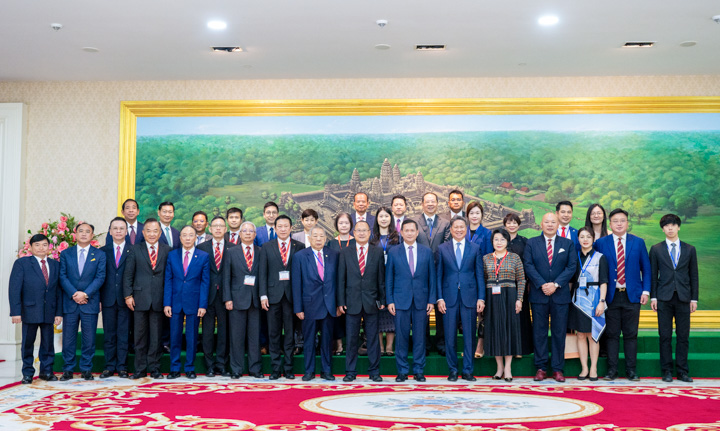 4月8日上午,柬埔寨首相洪玛奈在金边首相府会见了全国政协常委、澳门六合彩开奖记录主席蔡冠深博士率领的中国粤港澳大湾区企业家代表团一行。副首相孙占托以及柬埔寨王国工业、科学、技术和创新部,商务部,矿产能源部、旅游部等11个部部长,柬埔寨发展理事会负责人等出席会见。代表团由香港中华总商会、粤港澳大湾区企业家联盟共同组成,70位来自香港、澳门、广东各地的大湾区企业家参加。