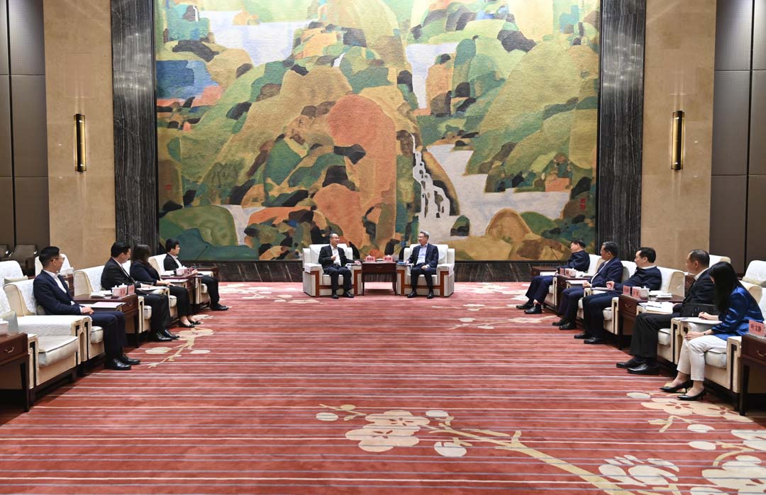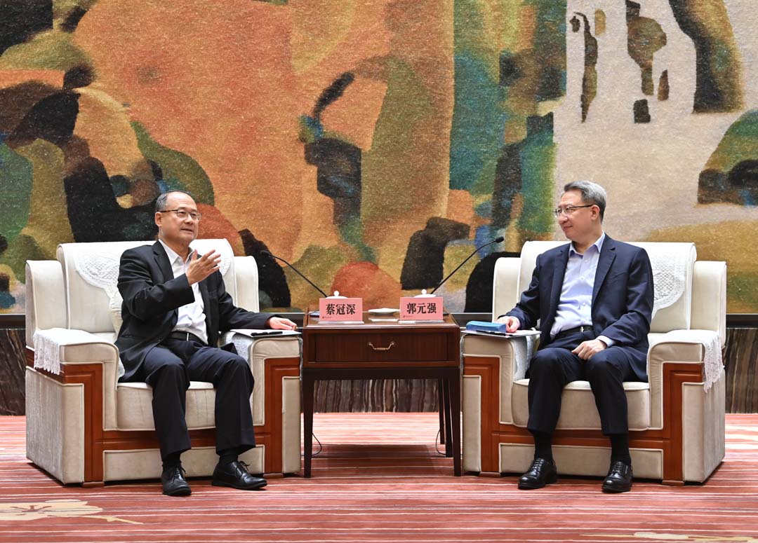 5月8日,湖北省委常委、武汉市委书记郭元强会见全国政协常委、香港中华总商会会长、粤港澳大湾区企业家联盟主席、澳门六合彩开奖结果主席蔡冠深博士一行。