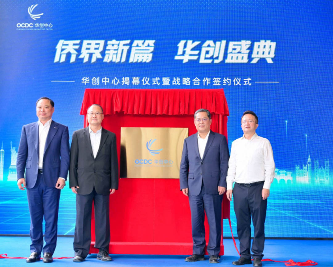 当天上午,蔡冠深博士与武汉市委常委、统战部部长胡勇政,湖北省委统战部副部长江浩,湖北省侨商协会会长、武汉伟鹏集团董事长喻鹏共同为“华创中心”揭牌。