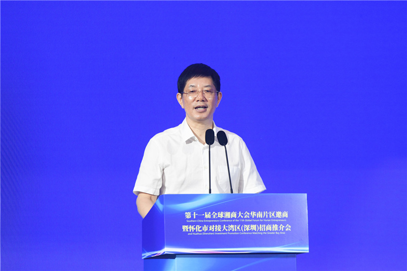 许忠建代表市委、市政府向长期以来关心支持怀化发展的商会、企业家和社会各界人士表示衷心感谢。他说,大湾区和怀化虽相隔千里,却山海相连、商贸相融、民心相通。怀化享有“天下福地”的美誉,当前紧紧锚定“三高四新”蓝图,深入实施“五新四城”战略,奋起二次创业,依托怀化国际陆港扩大对内对外开放,向海图强、换道超车,成了投资的宝地、创业的福地。真诚邀请大家当好怀化二次创业的“合伙人”,推动更多产业回归、资本回流、项目回投、人才回聚。怀化市委、市政府将坚决兑现惠企承诺,让投资者真正实现“在湘更吃香”“入怀乐开怀”。