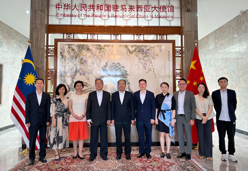 大使表示,中马两国理念相近,利益相融,人文相通,两国各领域合作亮点频出,双边关系一直走在地区国家前列。他指出蔡博士等大湾区企业家关注的领域,均有两国签署的合作协议为基础。且表示今年是中马建交50周年,在两国领导人战略引领下,中马两国的友好交往、合作共赢将更多惠及两国人民。大使馆将支持和协助联盟在马来西亚活动,并希望推动召开行业研讨会及两国经贸代表团互访。