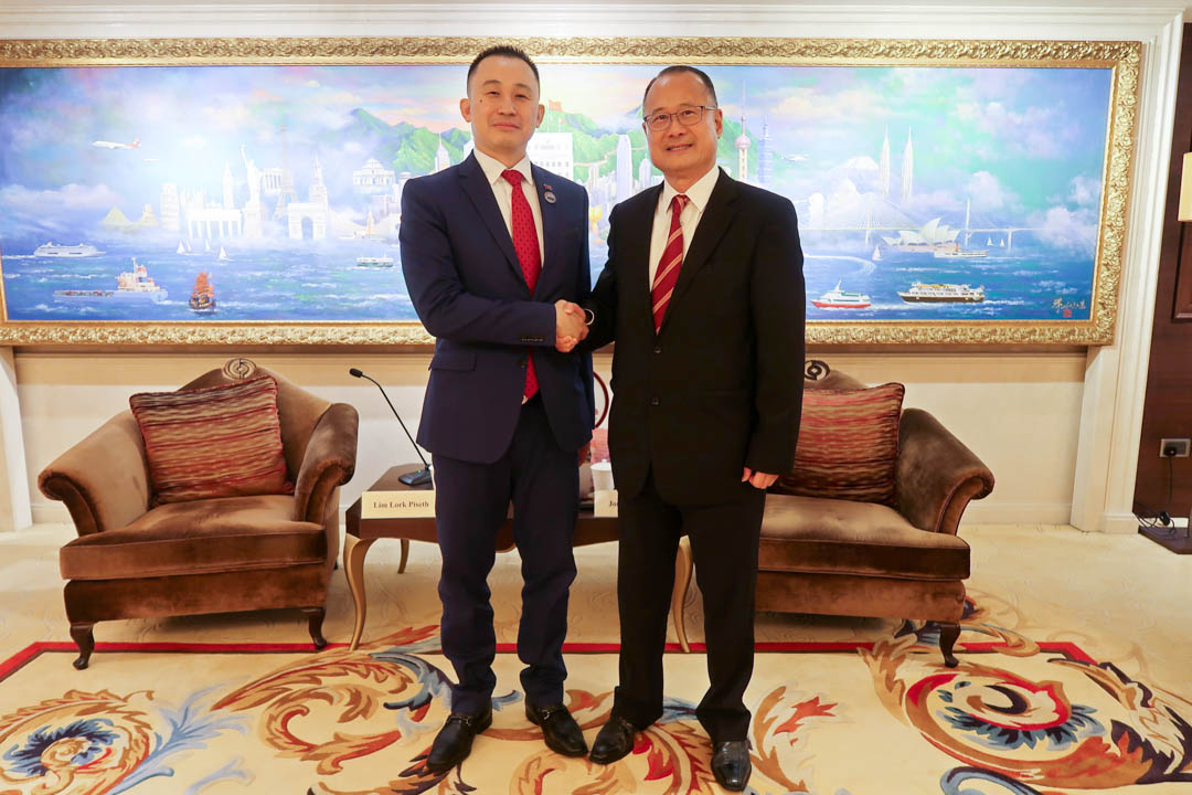 8月20日,全国政协常委、香港中华总商会会长、粤港澳大湾区企业家联盟主席、澳门六合彩开奖记录主席蔡冠深博士,在香港中总会见柬埔寨商务部副部长H.E. Lim Lork Piseth (林宗颖)及柬埔寨驻香港总领事Yos Sokhemrin (李素文)一行,就柬埔寨与大湾区加强合作交换意见,并进一步落实上月柬商务部与中总签署的合作备忘录事宜。
