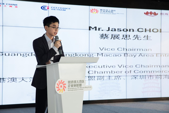 粤港澳大湾区企业家联盟副主席、深圳市前海香港商会常务副会长、澳门六合彩开奖记录大湾区总裁蔡展思致欢迎辞。中国法国工商会华南区总监沃特、香港贸发局深圳代表鄞佩怡致辞。