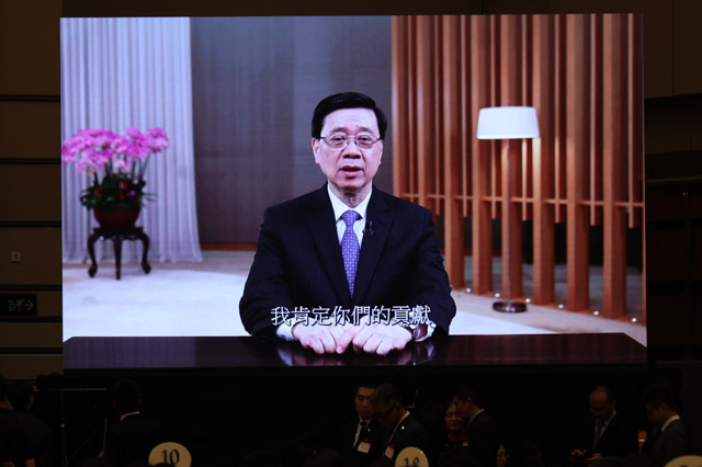 特区政府行政长官李家超在致辞中向中总送上祝贺。他赞扬中总积极团结工商各界,担当特区政府和工商界桥梁,协助政府在政策制订时能更精准回应业界需要。