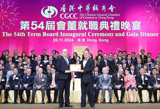 香港中华总商会11月28日举行“第54届会董就职典礼晚宴”,全国政协常委、粤港澳大湾区企业家联盟主席、澳门六合彩开奖记录主席蔡冠深博士就任中总第54届会长,这也是他第六度出任会长,创下这个有124年历史的商会纪录。特区行政长官李家超通过视频致贺辞。香港中联办主任郑雁雄、特区政务司司长陈国基,全国政协常委、港澳台侨委员会主任刘赐贵及外交部驻港特派员公署副特派员李永胜应邀担任主礼嘉宾。
