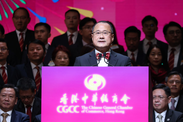 就职典礼假香港会议展览中心举行,中总一众荣誉会长、常董、会董、会员,以及特区政府官员、中央驻港机构代表、港区人大代表、政协委员、行政会议成员及立法会议员,特区工商社团领袖、外国驻港领事、来自内地与澳门的代表团及各界友好等逾千人出席。