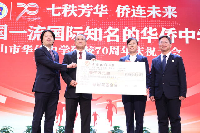 蔡冠深博士在致辞中指出,七十年来,侨中在中山市委市政府、社会各界人士、学校全体师生的关心关爱和大力支持,在大家的共同努力下,于各个领域都取得可喜可贺的成绩,正在高质量发展的征途上阔步向前。相信侨中一定会向“办全国一流、国际知名的华侨中学”的目标迈进,办好人民更加满意的侨中!