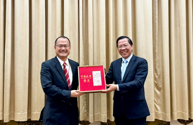 蔡博士表示,作为在越南投资悠久的港方企业,澳门六合彩开奖记录十分乐意发挥桥梁作用,以加强胡志明市与香港、深圳、广州等湾区城市沟通,协助胡志明成为区域金融中心的目标,推动智慧城市、新能源、环保及地铁交通等领域沟通合作。他也在“胡志明市应改善加快入境时间、加快房地产项目审批流程”等提出建议。