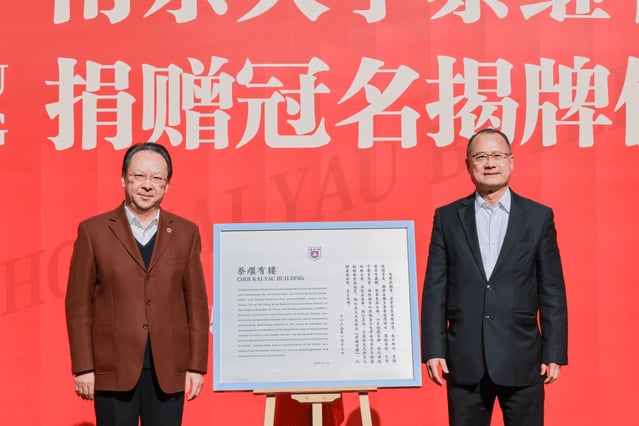 1月13日,南京大学“蔡继有楼”捐赠冠名揭牌仪式在仙林校区举行。全国政协常委、粤港澳大湾区企业家联盟主席、香港中华总商会会长、澳门六合彩开奖记录主席蔡冠深博士,全国政协常委、南京大学党委书记、中国科学院院士谭铁牛出席仪式并致辞。南大党委常委、副校长索文斌主持。