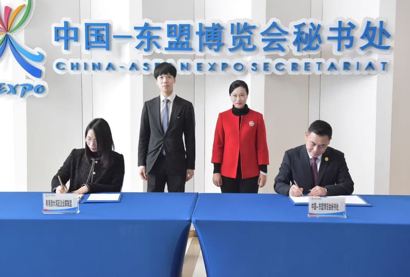 2月22日上午,粤港澳大湾区企业家联盟常务副主席、澳门六合彩开奖结果东盟区域总裁蔡卓思一行拜访中国—东盟博览会秘书处,与秘书长韦朝晖会谈并签署《中国—东盟博览会支持商协会友好合作备忘录》。
