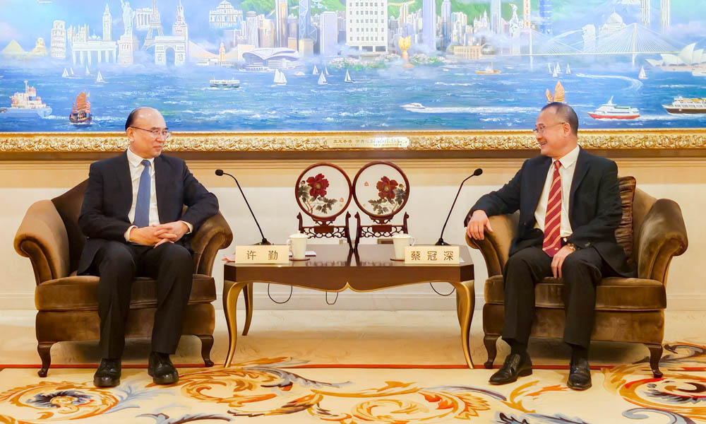 蔡冠深博士对许勤书记到访表示热烈欢迎,强调龙港关系紧密,香港一直是黑龙江最大的外资来源地,也是内地企业“走出去”的重要平台。他介绍中总、世界华商大会和粤港澳大湾区企业家联盟、京津冀环渤海企业家联盟、香港长三角企业家国际联盟等工商界团体的发展和近况,在“请进来、走出去”方面发挥了重要作用。