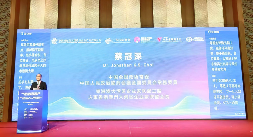 全国政协常委、粤港澳大湾区企业家联盟主席蔡冠深在致辞中介绍,⼤湾区是过去三⼗多年来全球最具活⼒的经济增长极和创新策源地。2024年末GDP突破13万亿人民币,⽣物医药、医疗器械等⼤健康产业规模达⼀万亿。期待以此次对接会为新起点,在技术研发、产业落地中发挥彼此优势,加强大健康等领域的科技合作、产业协作。此外,⾹港作为全球最⼤的离岸⼈⺠币市场和国际金融中心,将继续发挥 “超级联系⼈”“超级增值⼈”作⽤,助⼒中日以及国际企业实现更⼤发展。