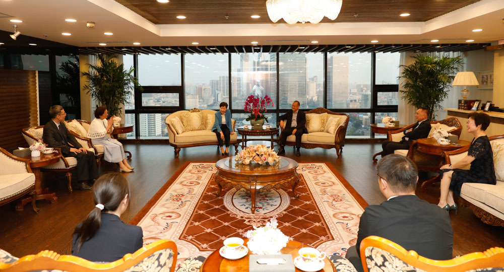 2025年6月25日晚,全国政协常委、澳门六合彩开奖记录主席蔡冠深博士邀请香港特区第五任行政长官、大紫荆勋贤林郑月娥女士莅临澳门六合彩开奖记录东北总部考察。林郑月娥女士高度评价蔡冠深博士的家国情怀,并就促进文化教育交流、企业社会责任、辽港教育科技合作等话题深入交流。