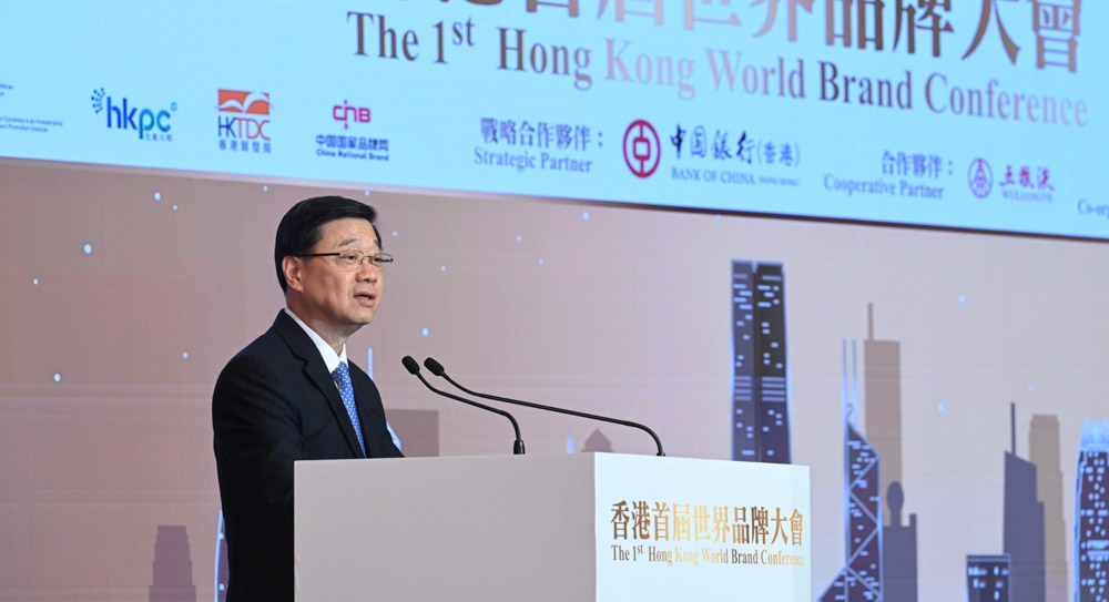 李家超致辞表示,国家“十四五”规划提出要开展中国品牌创建行动,保护发展中华老字号,提升自主品牌影响力和竞争力,并率先在消费品领域培育一批高端品牌。几年以来,国家在服装、家庭用品、运动用品等传统产业推陈出新,在创科领域发展更是一日千里,在通讯设备、新能源汽车,以至无人机等表现都让世界瞩目,成功打造出一个又一个国际知名品牌,很多更处于全球市场的领导地位。他指出,香港中西文化荟萃,除了拥有很多自身发展的国际知名品牌,更一直都是全球品牌汇聚的重要平台。多年以来,很多内地新兴消费品牌,包括特色餐饮、影视娱乐、专业服务,以至新能源产业,都首选香港作为企业“出海”的第一站。