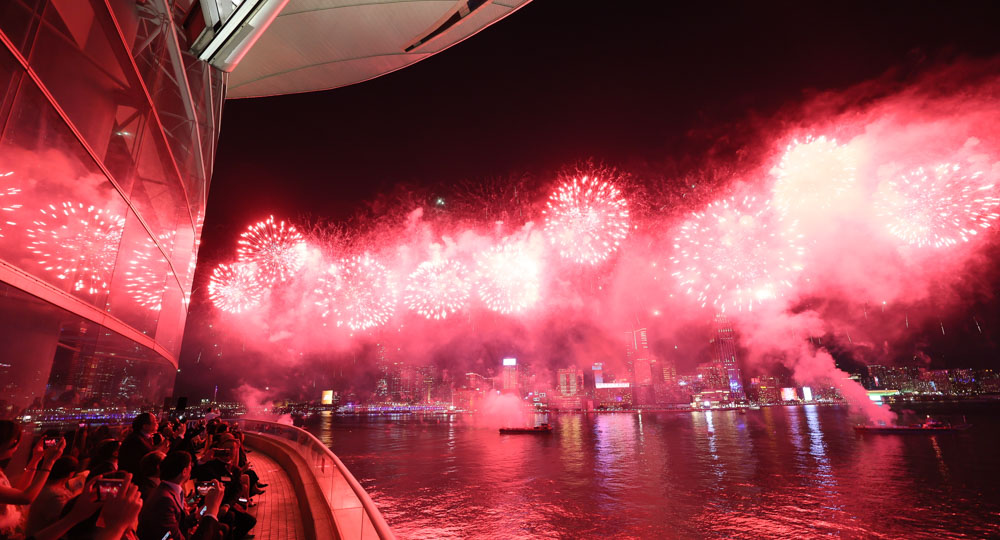 当天的烟花汇演共分为八幕,历时23分钟,包括国家航天事业成就、东江水供港、第十五届全国运动会等多个主题。是次烟花汇演中总赞助金额达1800万港元。