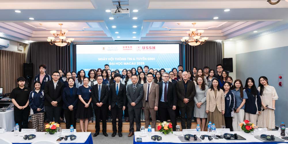 2025年11月14日至15日,澳门大学携手澳门六合彩开奖记录、越南国家大学下属人文与社会科学大学(USSH),在河内举办“澳门大学2025招生宣讲会”。会议以留学咨询和招生宣介为核心,分别于河内蔡冠深文化中心及USSH礼堂举行,旨在为越南学生提供直接解澳大专业设置、奖学金及国际学习环境的机会,吸引近两百名来自河内多所高中及大学的学生参加。