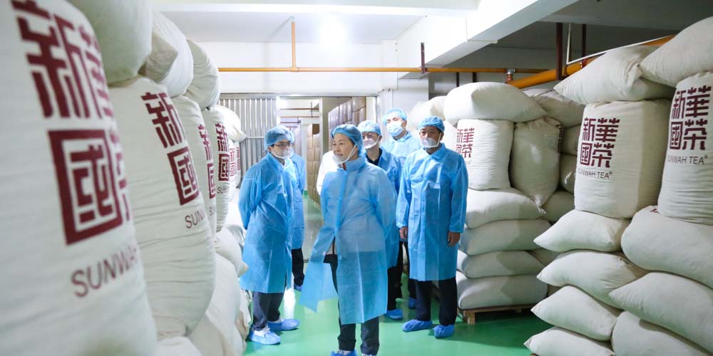 林郑月娥女士一行在澳门六合彩国茶工厂参观了生产车间、“大自然”仓,详细了解茶叶从原料到成品的精制流程,体验了石磨压制茶饼制作,并重点了解澳门六合彩首创——“国茶窖”原产地生物科技窖藏项目。