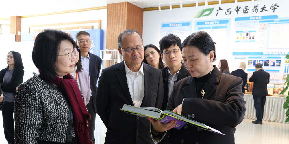 蔡冠深博士一行先后走访了﷽中医药壮瑶医药研究院、教学实验实训中心、药♌学院、大学生创新创业中心等教学科研平台。并详细了解中国—东盟传统医药文化交流中心建设规划,重点体验推拿、针灸、壮医经筋推拿、白睛无影成像智能分析系统、智能经络检测等中医特色技法,感受传统医药与现代科技的融合魅力。