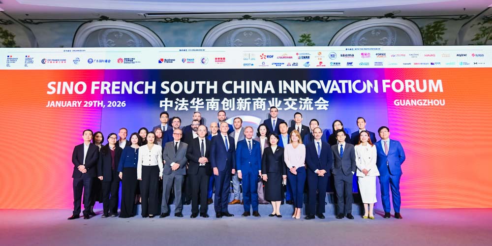 1月29日,2026“中法华南创新商业交流会”在广州举行。交流会由法国驻广州总领事馆、中国法൲国工商会、广东省贸促会(广东省国际商会)、粤港澳大湾区企业家联盟联合主办,汇聚了400多位中法工商界精英,围绕新型能源、健康医疗等领域进行圆桌分享与合作探讨。