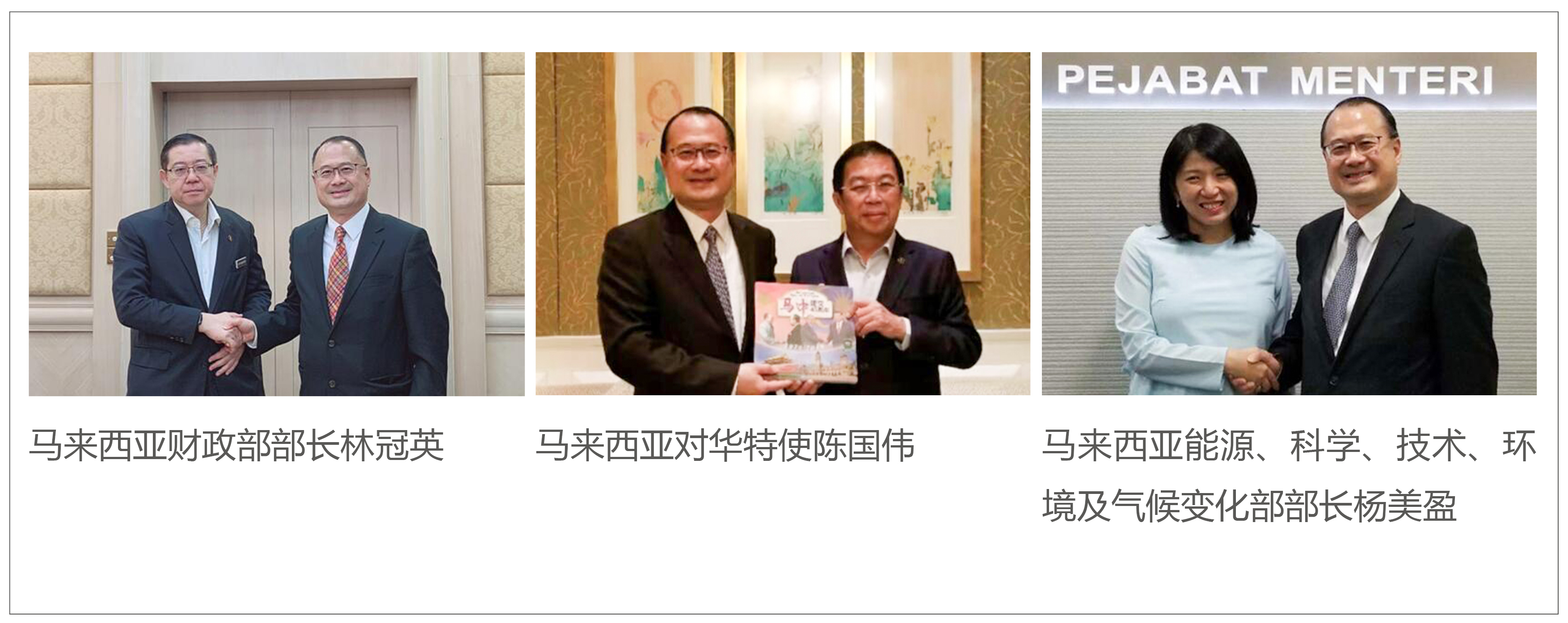 1 月30日晚,蔡冠深一行拜访马来西亚财政部部长林冠英时,双方亦对此进行了交流。其中,AI 产业在两地办双园的发展模式,得到了林冠英部长的认同与支持。1月31日,一行拜会中国驻马来西亚大使白天,并就其近几日在马来西亚所推动项目的落实发展情况,进行了说明。白天大使对于蔡冠深促进两国经贸合作,以及对粤港澳大湾区建设的付出加以赞赏与支持。