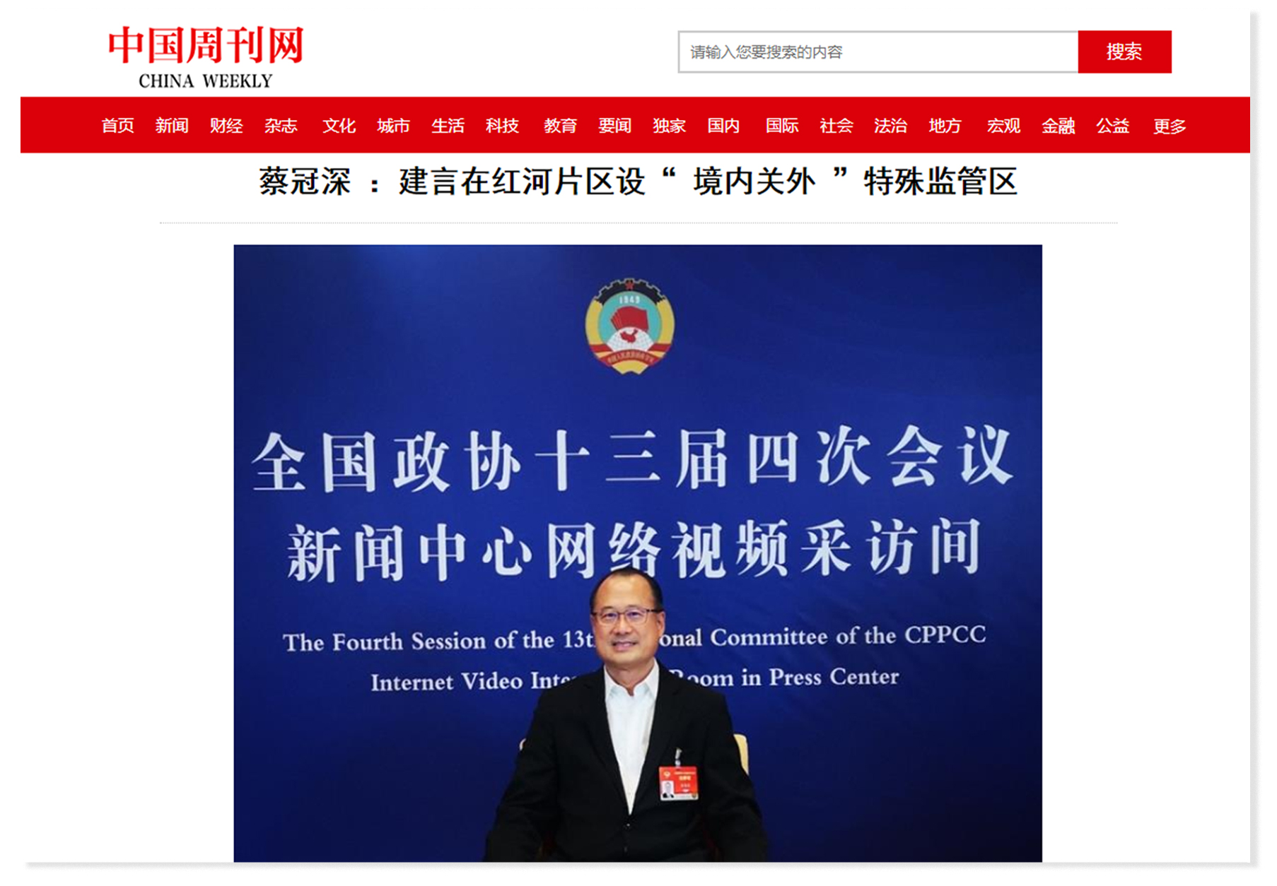 蔡冠深认为,抓住RCEP带来的新机遇,在红河片区设立 “境内关外”特殊监管区,与“昆明—河内—海防”经济走廊联动,能使红河片区真正成为云南“国家西南地区面向南亚、东南亚辐射中心辐射中心”的窗口和前沿,将促进越南扩大对我方的进一步开放,形成联动发展。