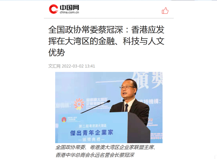 回顾过去一年,蔡冠深曾多次出席有关大湾区的活动,既注重加强与内地各地区的联系,亦积极做好国际推广,希望加强与各地、各企业的合作,希望促进国内国际双循环。