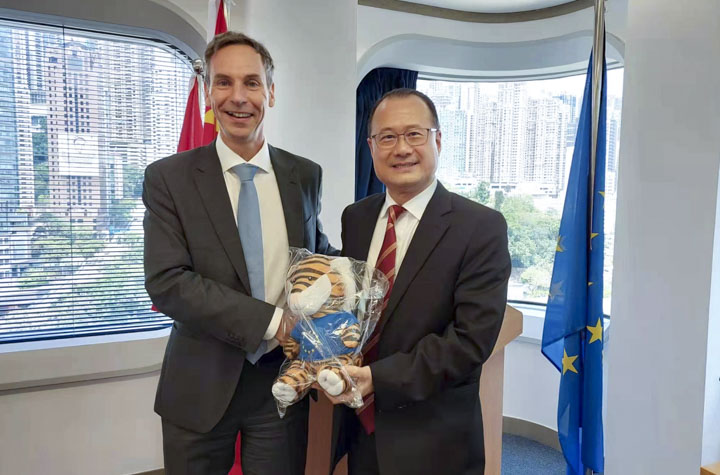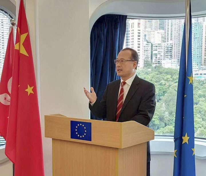 5月19日,集团主席蔡冠深博士应欧盟驻港办事处邀请,向数十位欧盟驻港代表介绍香港最新情况及粤港澳大湾区发展前景。 欧盟驻港办事处贸易部主管、奥地利、比利时、芬兰、法国、德国、匈牙利、爱尔兰、意大利、荷兰、波兰、瑞典等驻港总领事及商务专员出席会议。