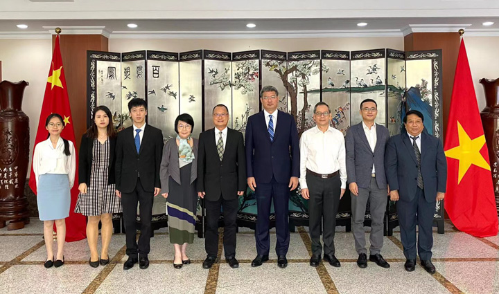 7月25日,全国政协常委、粤港澳大湾区企业家联盟主席、环渤海企业家联盟主席、澳门六合彩开奖记录主席蔡冠深博士一行,访问中国驻胡志明市总领事馆,与魏华祥总领事会谈。