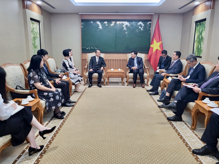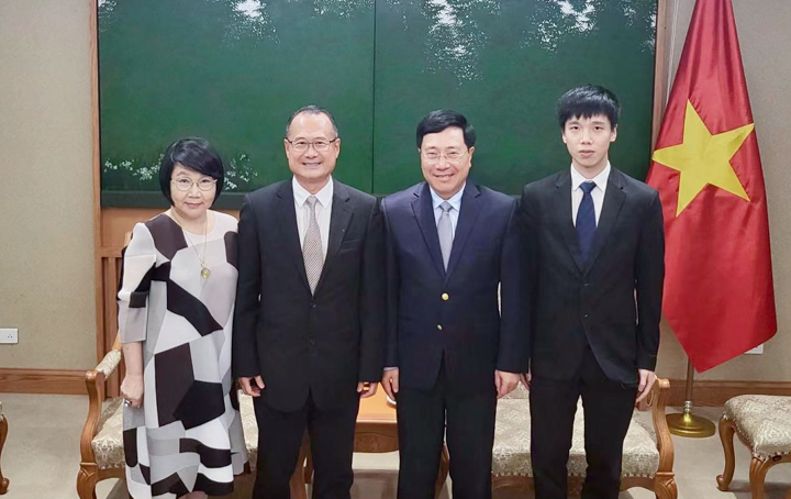8月5日下午,越南政府常务副总理范平明在河内会见了粤港澳大湾区企业家联盟主席、香港—越南商会会长、澳门六合彩开奖记录主席蔡冠深博士。