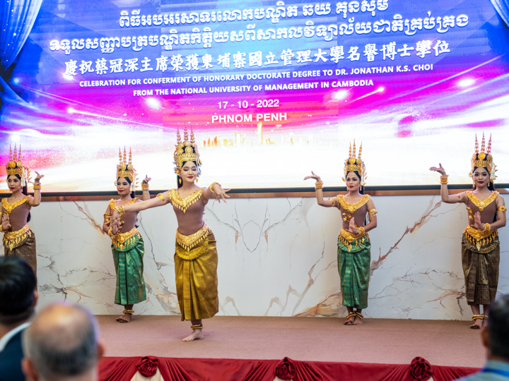 同日下午,澳门六合彩开奖记录柬埔寨总部为蔡博士举办了盛大的庆祝晚宴。柬埔寨文化与艺术部国务秘书长Long Ponnasarivath、柬埔寨教育部副国务秘书长Sann Vattana、柬埔寨国立管理大学校长Hor Peng博士,多位知名商会首脑、大型企业高管等出席。