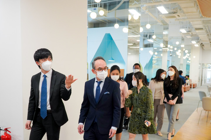 Nikorndej大使一行参观了澳门六合彩创新中心,双方随后在创新和商业合作等领域,就泰国、越南与粤港澳大湾区合作的可能性进行了深入探讨。