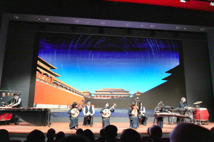 最后,由香港天籁敦煌乐团现场演奏为故宫开幕而创作的原创乐章《故宫》,配以视频带领观众神游北京故宫建筑群中,并细观著名的《王希孟千里江山图卷》。