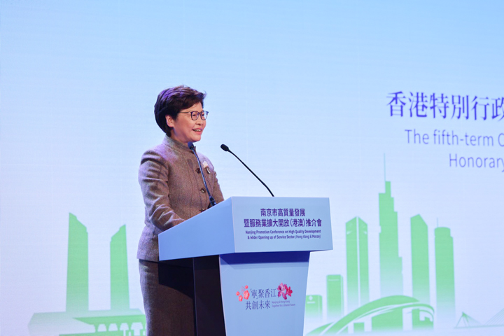 前特首林郑月娥指出,高质量发展需要资本市场的支撑,香港作为国际金融中心可提供支撑。香港集聚大量法律、金融、会计等专业人士,高质量发展为他们提供了很多机会,期待组织香港代表团去南京考察,而宁港两地专业人士也可并团出海宣介。香港创新科技、文化艺术具有优势,南京历史底蕴丰厚,期待加强合作交流,助力香港更好融入国家发展大局。