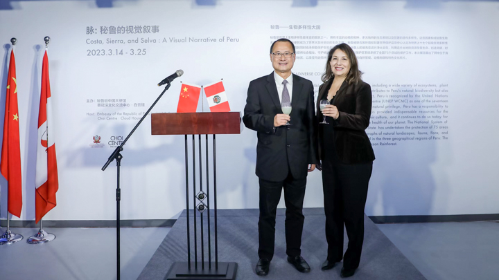 3月13日下午,《脉:秘鲁的视觉叙事》摄影展在北京白云馆揭幕,秘鲁大使馆与蔡冠深文化交流中心·白云馆联合举办,旨在展示秘鲁自然美景和文化多样性,促进两国文化交流。
