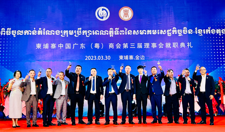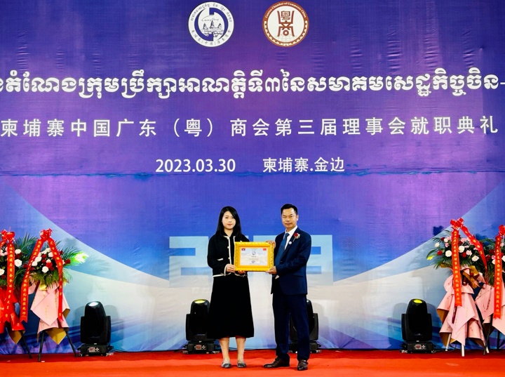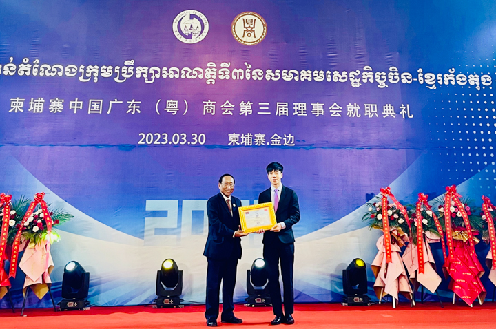 3 月 30日下午,澳门六合彩开奖记录董事、东南亚区域总裁蔡卓思在金边参加柬埔寨中国广东(粤)商会第三届理事会就职典礼。